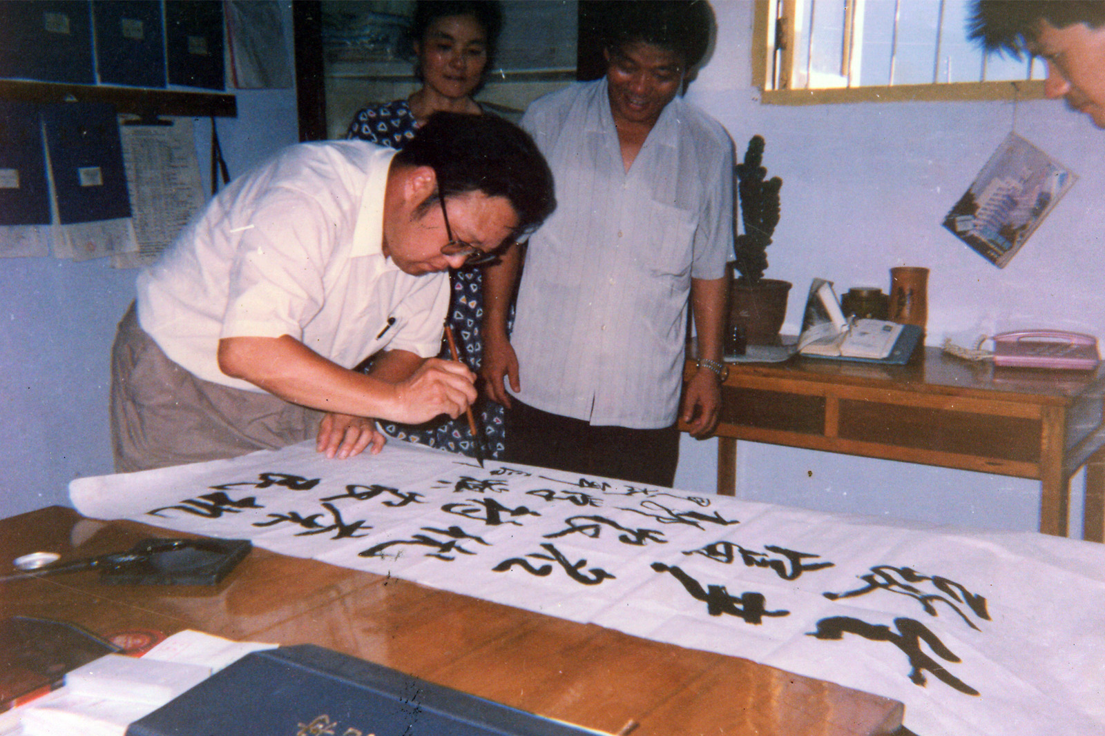 1990年, 衢州市委書記郭學煥來公司檢查指導工作。在聽取公司總經理程玉明對相關茶機產品的介紹后,潑墨提毫贊“生產名優(yōu)茶機,致富農村農民”。